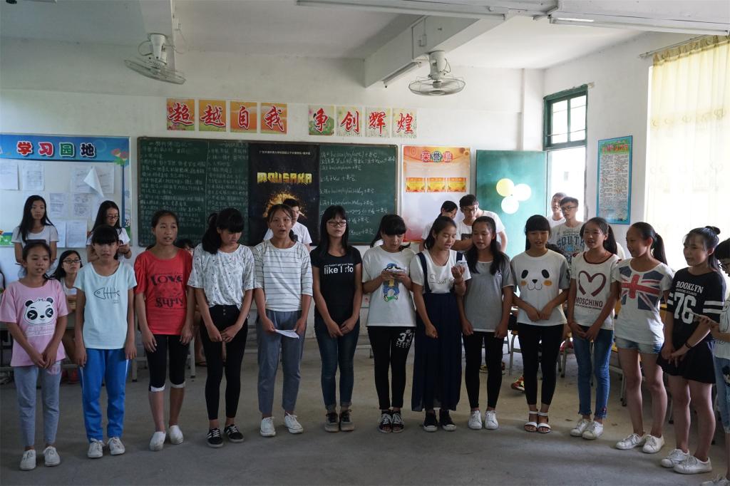 本网讯 2016年7月16年,是广东外语外贸大学校四团三下乡“魔学蛋”服务队在清远阳山岭背中学陪伴孩子们的最后一天,这一天最终还是到来了,当天下午,学生和队员们在课室一起举行了告别会,为本次活动划上句号。
