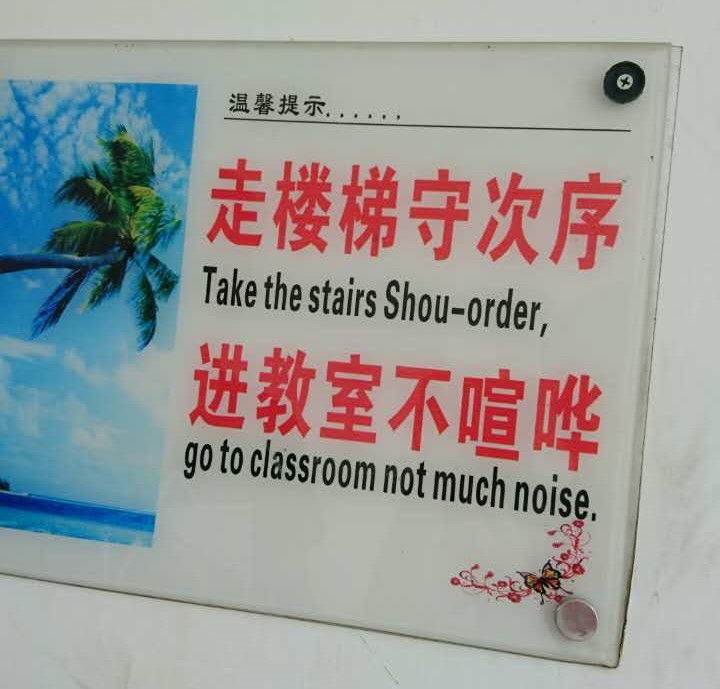 瑞婷:有的。就是之前在宿舍楼有看到告示牌,那告示牌上面对于中文的英文解释……我有点担心学生们的英语水平会不会有点跟不上。