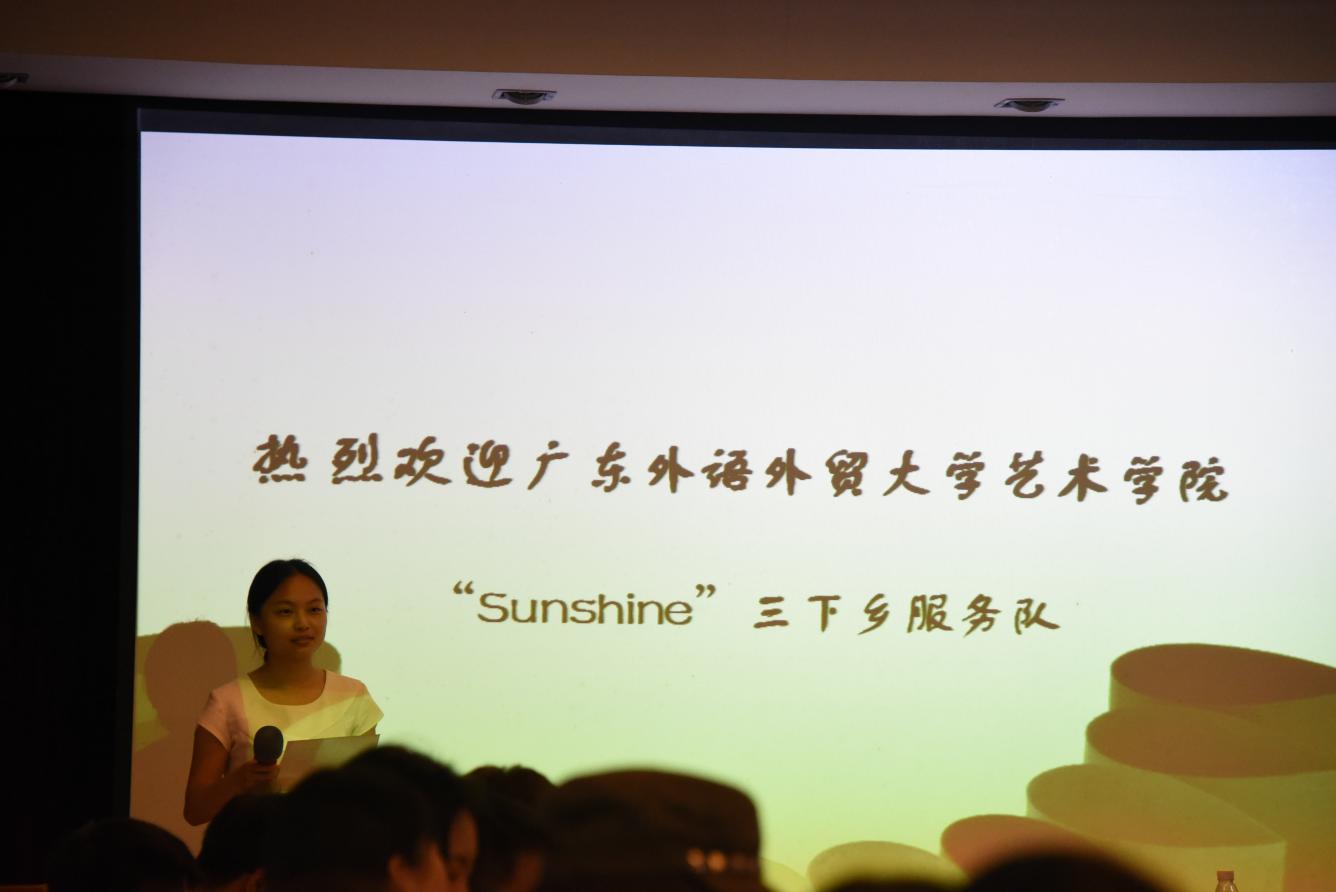 本网讯 2016年7月10日,广东外语外贸大学艺术学院“Sunshine”三下乡服务队,在经历了近四个小时的车程之后,顺利抵达韶关市万豪英文中学,并与万豪英文中学的领导老师一同举行了本次三下乡活动的欢迎会。