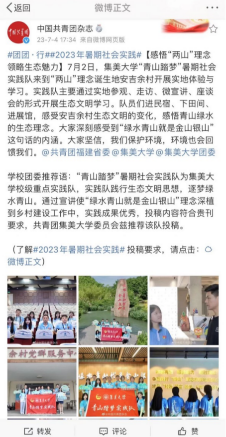 #团团·行##2024年暑期社会实践#【标题】……内文……@团省委微博@学校微博@学校团委微博