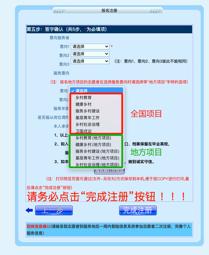 在报名期间,你只需确定服务省和服务专项类型的意向即可。具体服务岗位由服务省项目办在你到达服务地后,根据你所报意向并结合你的专业特长统一协调分配