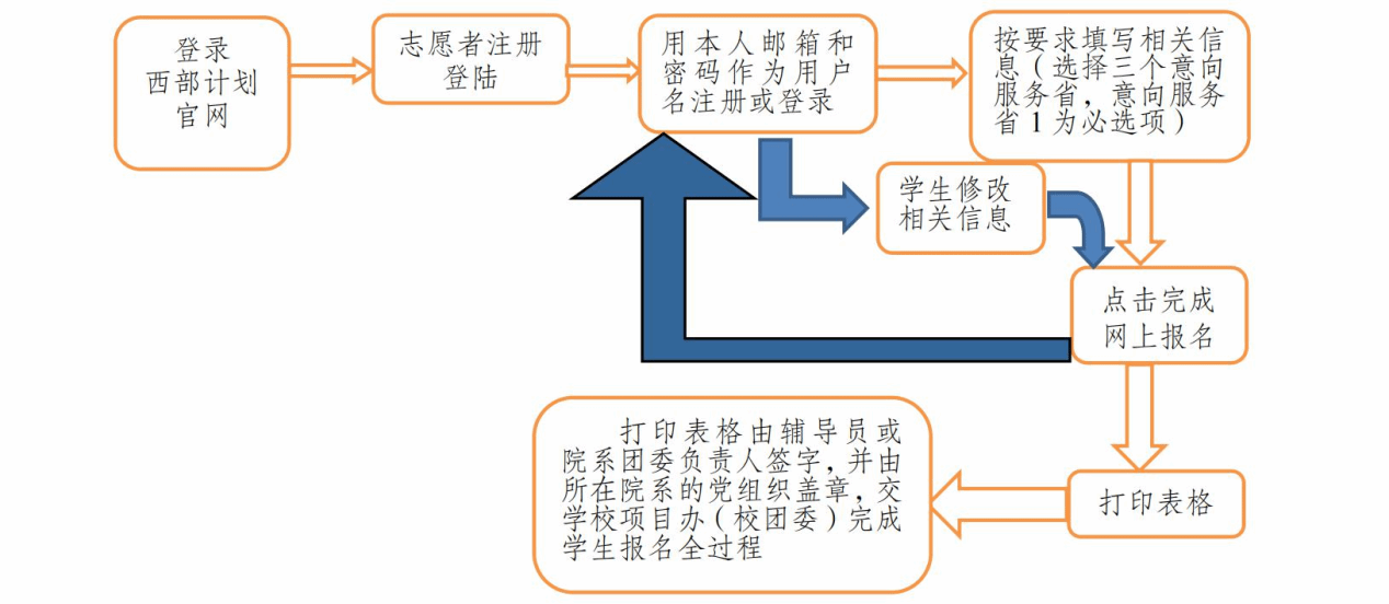 你好,具体流程为个人通过系统报名,报名后所在学校需要审核,并组织选拔招募,具体可以咨询高校项目办(设在高校团委)。