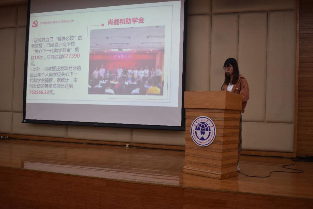 省青马班学员李卫芬以“争做新时代马克思主义者”为主题,介绍了青马班的肖鑫和教授。肖教授常常挂在嘴边的一句话是,“我的所有一切都是党、国家、政府、母校、老师给予的, 我必须尽心、尽力、尽责回报。”向我们展现了优秀马克思主义者的精神风貌。