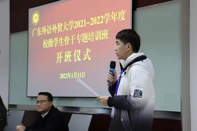 同时,学员代表黄顺发在发言中表明了认真投入学习的坚定决心,号召学生骨干们在勤学善思中追求真知,在明辨笃行中躬行实践,在发奋有为中砥砺前行,成为学贯中西、进德修业、务实致远的高素质广外人才。