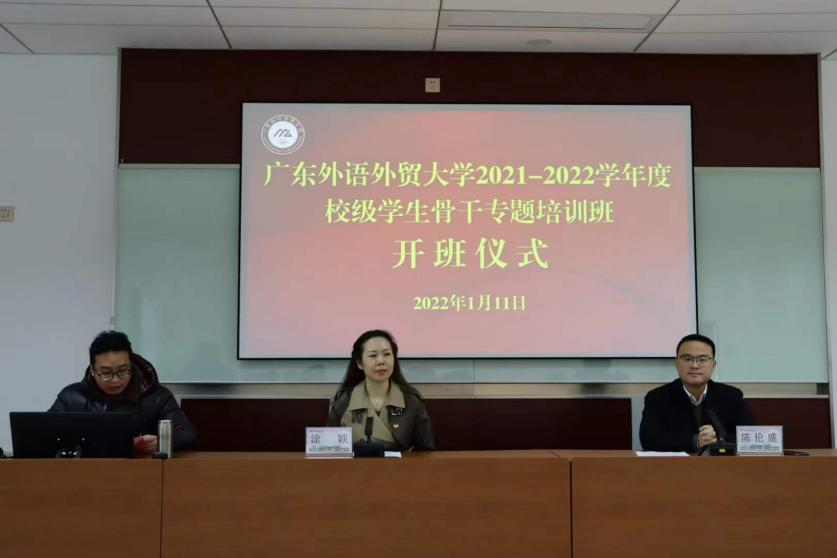 在开班仪式上,校团委副书记涂颖、韶关市委党校校委委员陈伦盛分别介绍了广东外语外贸大学和广东南岭干部学院简要概况。陈伦盛向学员介绍了韶关的发展历史,强调了学习期间的纪律要求,并对本次培训的成功举办表示祝愿。