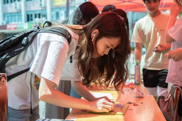 而游戏摊位的气氛同样十分高涨,同学们络绎不绝,欢声笑语不断。本次游戏摊位有五个,分别是“一个都不能少”“翻卡忆杰出青年”“映红诵声传精神”“总书记的‘青春寄语’”和“光辉足迹顾青运”。