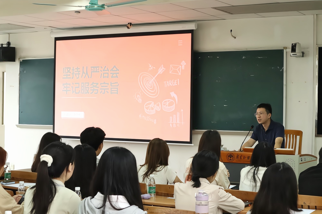 随后,赵继伟老师作《坚持从严治会,牢记服务宗旨》的专题培训。他强调,加强学生会组织改革,坚持从严治会,对建设一支素质高、能力强的高质量学生骨干队伍意义重大。他从政治上严格、组织上规范、作风上严实三个方面对学生会组织提出了要求,要求学生骨干必须坚守政治信仰、把牢政治方向、加强政治引领,并从构建精干高效的组织体系、制定严格规范的选人机制、建立严密科学的组织制度等方面致力规范学生会,时刻将纪律约束落实到实处,真正将“为同学们服务”落到实处。