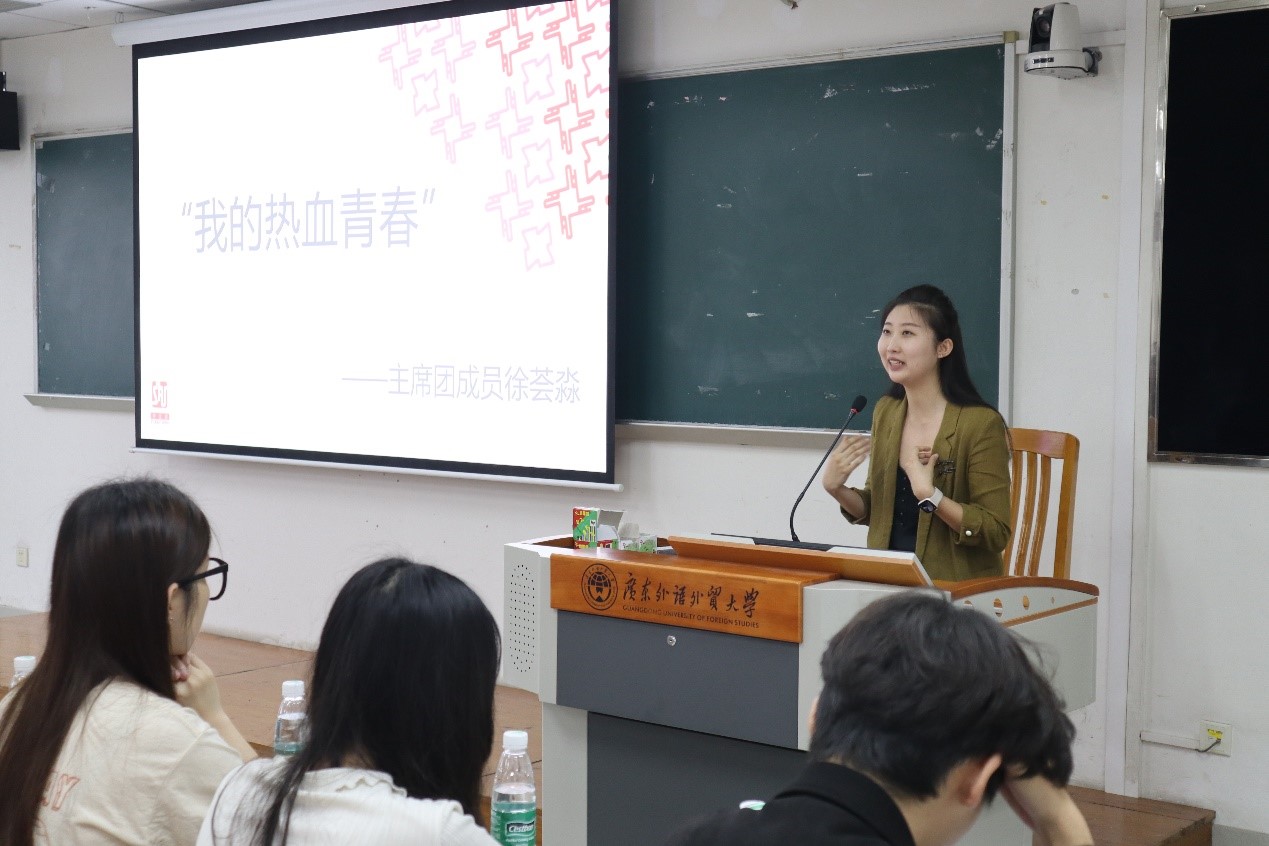 会上,校学生会主席团成员徐慧淼以“我的热血青春”为主题分享她参军入伍的经历,通过讲述她的热血经历,鼓励同学们要以更高标准要求自己,为国家贡献青春力量;“西部计划”志愿者、校研究生会主席团成员郭文隽以“青春有志”为主题,回顾了自己参与研究生支教团一年以来的生活、学习、工作感受,自豪地展现了新疆绚丽的景色,淳朴的民风,稳定的治安,诠释了积极践行到基层去、到农村去大有作为的优秀志愿者形象;学生工作部的郭伟鑫进行了“4+1+2(3)”模式硕士研究生推免项目的宣讲。他从项目内容、推免条件、推免程序以及职责待遇等四个方面详细向与会人员介绍了该项目,呼吁更多优秀的学子参与推免项目。