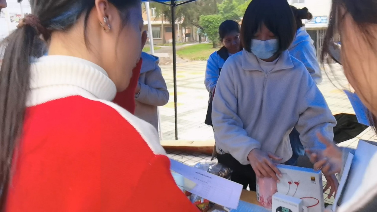 为了更好地宣传本次摊宣志愿活动,让因其他原因无法亲临现场的同学们能够参与到本次活动,经贸团学实践部增设了线上直播游园的形式,让更多的人参与其中。本次直播活动将近1000人次观看,获得过万的点赞数量,主持人有声有色地讲述着现场的情况,让线上参与的同学们能够身临其境,体验现场的活动氛围。本次直播活动极大的扩大了摊宣的宣传力与影响力。