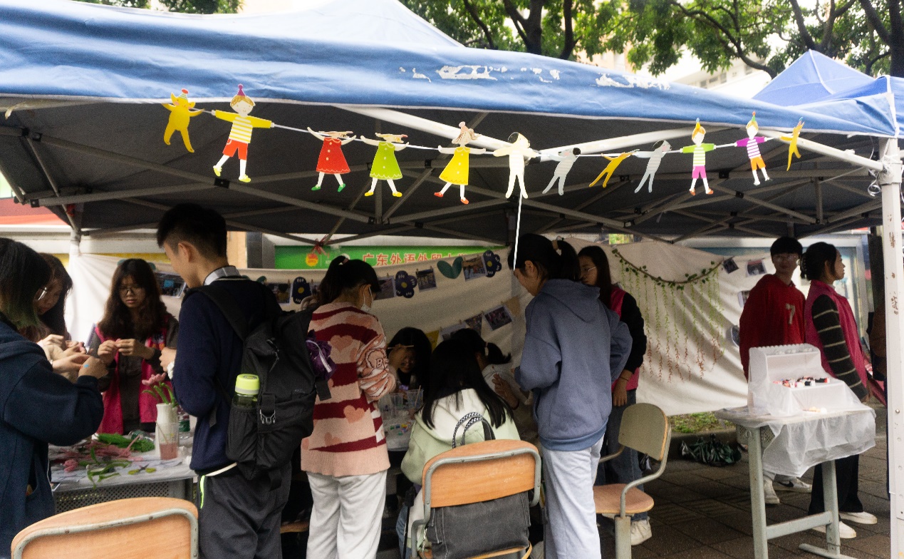 在本次摊宣活动中,各志协部门们不仅通过相关游戏激发同学们的参与度,同时也将志愿精神传递到学校、社会的各个角落。经贸团学实践部设计了涂鸦雕塑娃娃与手工折花的环节,同学们亲手制作的物品将会通过工作人员的联通下送至山区的贫困山区的小朋友们手中。新传团委实践部举办的纸花纸鹤寄祝福活动,传递了同学们对身边女性与工作人员的感谢与赞扬。会计学院Wing青年志愿者协会在摊位上举行温暖传递(给老兵们写明信片)的活动,向曾经为祖国统一、民族团结的老兵们致以崇高的敬意与感谢。