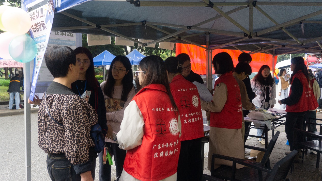 “消费就业,法律护航”,广外法律援助中心当天通过举办“普法猜猜猜”和“套圈答题”活动,让参与到其中的学生、教职员工们切实了解到有关消费者权益、劳动权益等相关法律知识,懂得如何运用法律手段维护自己的权利。