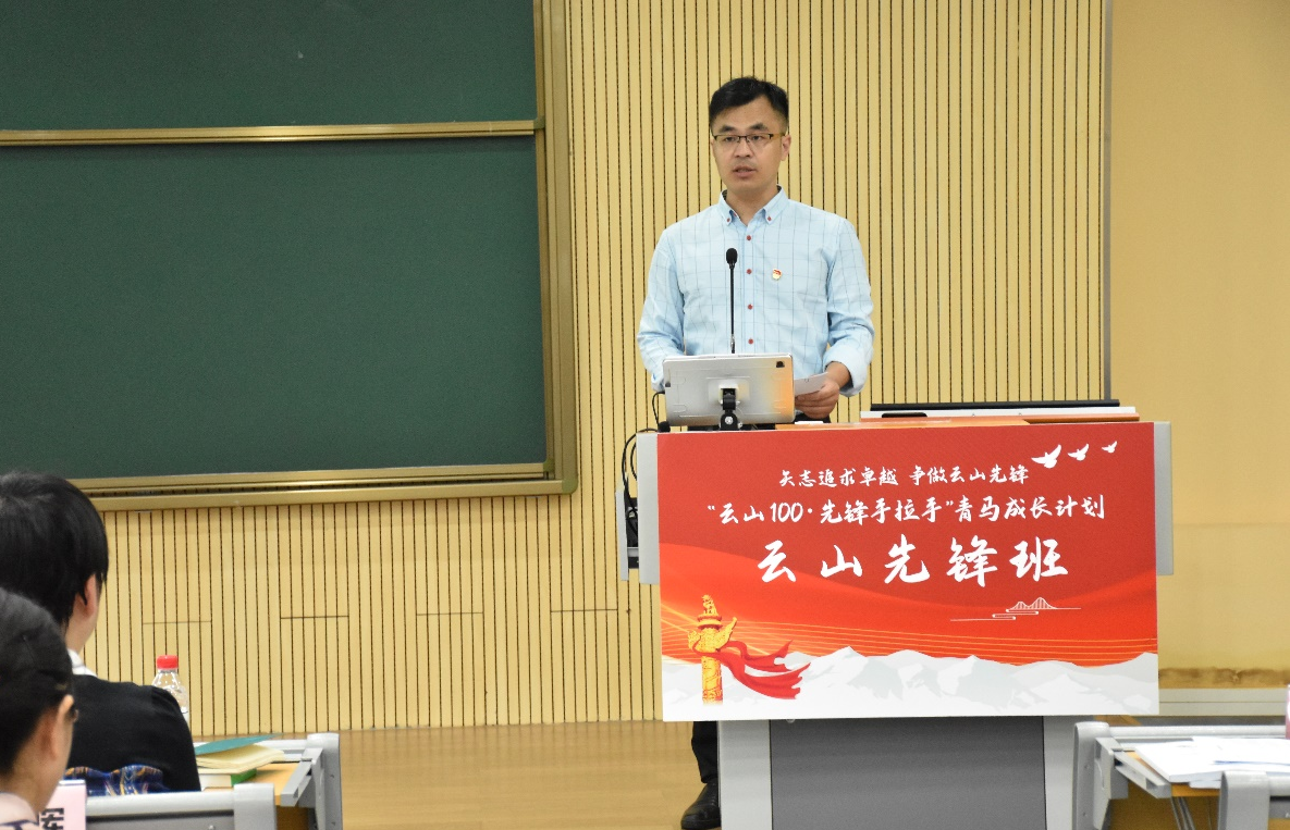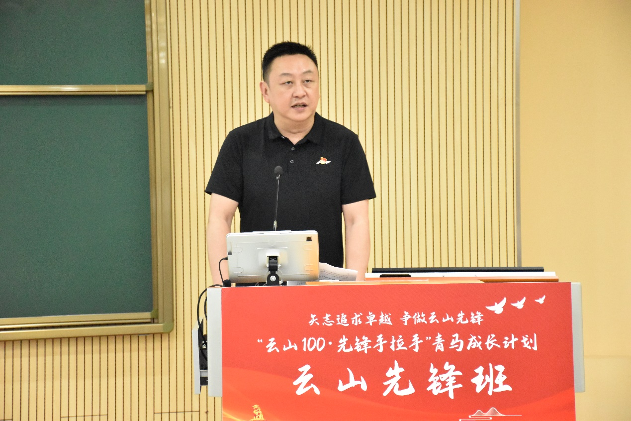 校团委书记刘郎介绍第二期选拔情况。第二期云山先锋班在第一期云山先锋班培养的基础上,优化培养机制,经过各基层党委、党组织的选拔推荐,在全校范围内共招募了50名学生,其中党员学生骨干(含预备党员)25人,团员学生骨干25人。第二期先锋班学生政治素质较高,日常基本表现良好,在学生中能较好的发挥示范引领作用。