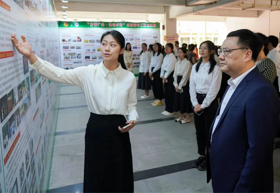习近平总书记在给中国农业大学科技小院的学生回信中勉励青年要“在乡村振兴的大舞台上建功立业”。一直以来,校团委主动融入乡村振兴工作大局,将志愿精神和雷锋精神传承发扬到火热的祖国建设最前沿,持续、广泛、深入开展实践活动和志愿服务,探索构建出“理论+宣讲”“专业+志愿”“品牌+机制”的“三‘+’马车”模式,拉动全校志愿服务和实践育人工作上新的台阶,取得了较为突出的效果。主题教育开展以来,积极号召青年学子积极参与西部计划、乡村振兴计划、“百千万工程” 突击队行动项目、大学生社区实践计划等,规模化引导青年返乡入乡投身乡村振兴。同时,还聚焦高质量发展,组织多语言志愿服务队服务“读懂中国 湾区对话”专题论坛、广交会等大型国际赛会,以项目化提升志愿服务常态化专业化水平,推动我校志愿服务高质量发展。推动校学生会(研究生会)首创“校会—机关”面对面机制,已开展3场交流活动,畅通学生与职能部门沟通渠道,让学生直观了解学校运作,也让学校直面学生需求,为学校提升治理体系和治理能力现代化做贡献。