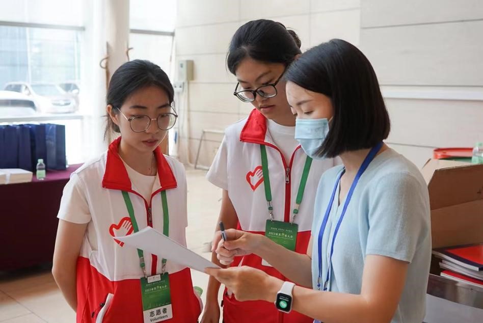 在广州白云国际会议中心主会场,有100多位志愿者分别在9个岗位参与服务。在会务保障组,志愿者们心细地将会务材料一一清点,装入袋中;在接待组,志愿者们面对港澳台嘉宾、海外嘉宾和媒体代表,他们耐心地协助嘉宾报到,指引场地路线,为参会嘉宾做好各项保障工作;在平行论坛组,志愿者们发挥专业优势,为外宾们提供语言翻译服务。“没想到在活动现场,除了运用外语以外,我还跟嘉宾们说起了家乡话!”来自英文学院的陈慧珊兴奋地说道:“我是客家人,我接待了一位来自家乡的企业家,我们用家乡话交流,感觉非常亲切”。