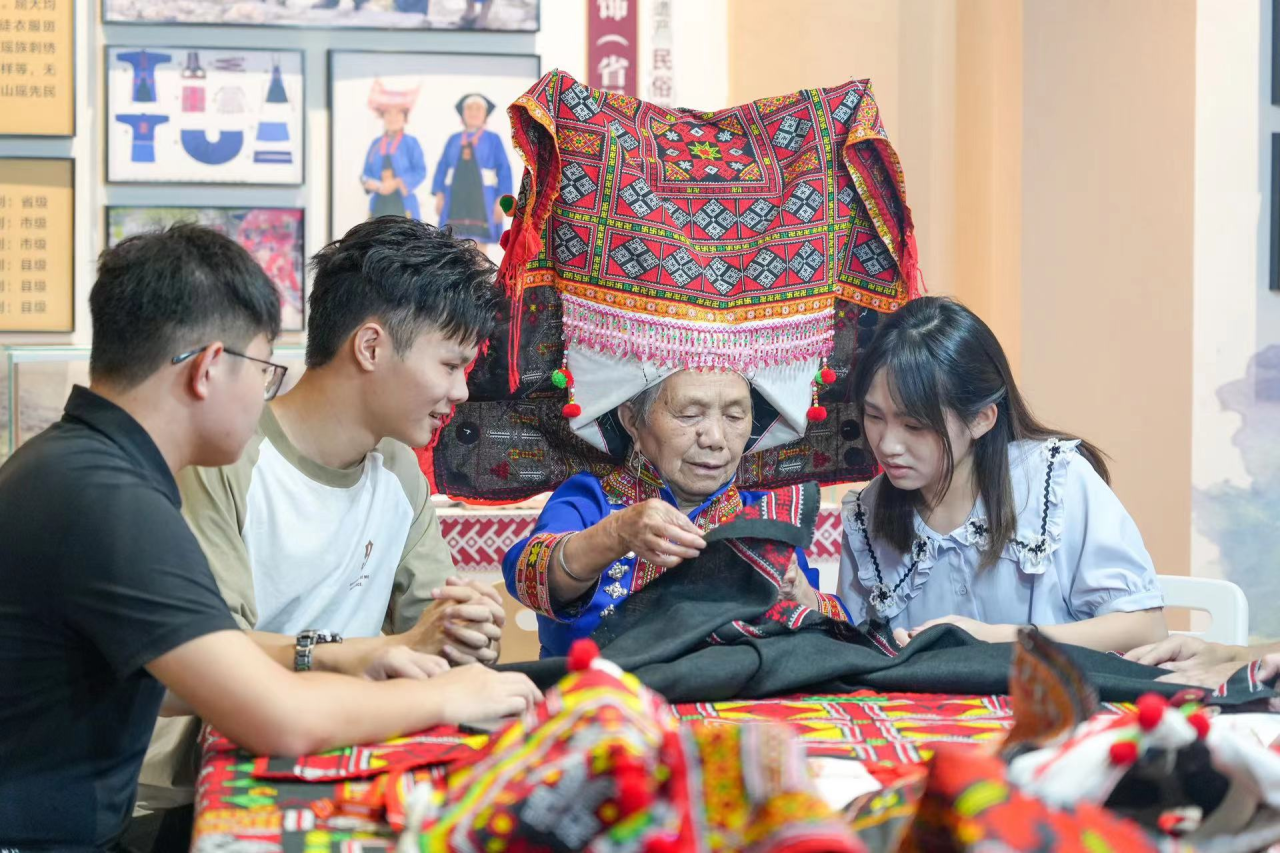 项目开展三年来,团队翻山越岭走访绣娘300余人,收集了481套原生态瑶族刺绣,整理归类了42类不同支系的瑶绣纹样元素,建成了瑶绣纹样IP库,并据此创新设计了526款瑶绣文创产品,现年产服饰1.49万套,其他各类文创产品4.83万件。队员们还注重瑶绣人才培养,开展瑶绣体验和培训课程74期,累计覆盖1.2万余人,并广泛开展“非遗进校园”活动,产教融合促进瑶绣传承发展。