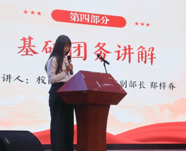 基层建设部的学生骨干分别讲解了团组织的三会两制一课及基础团务的主要内容。三会两制一课的实施主体是每一个团支部,正确发挥团支部的作用,有利于增强团组织的吸引力、凝聚力和战斗力,从而影响更多的团员青年,并着重强调了团员组织关系转接工作。除此之外还有现场教学如何使用“智慧团建”“团学时空”“活力在基层”“青年大学习”、第二课堂系统或者网站。各类平台和系统为团支书们获取团的最新讯息提供了丰富渠道。