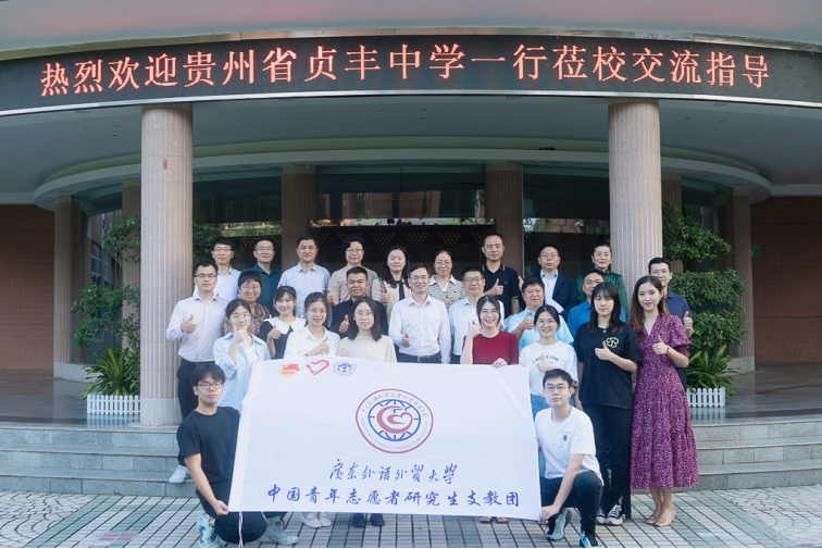 我校自2015年起,选派研支团志愿者赴贞丰中学开展支教工作,至今已有36名广外学子,在贞丰中学上岗服务,累计服务学生超过4000余人次,志愿服务时长超过12万小时,在服务地取得丰硕成果,多次受到学校和各级党政部门的高度评价。研支团贵州分队和志愿者先后获得贞丰县“优秀志愿者”、“优秀组织奖”、个人演讲比赛个人优秀奖、贞丰县2023年度优秀教师;广外研支团带领学生获得第19届“外研社杯”全国中学生外语素养大赛省级二等奖和省级三等奖。研支团参与的项目“一路童行-城乡儿童防性侵项目”获得第六届中国志愿服务项目大赛金奖。
