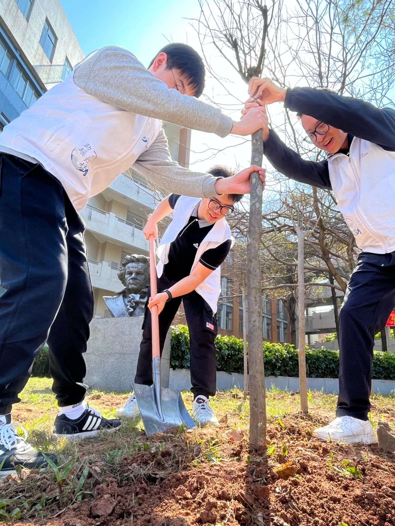 “今天见到了久违的晴空,春意盎然的日子遇上植树节,更加生机勃勃!很开心能够参与种树的过程,融入这片绿意的传递中,用实际行动为绿美广东生态建设助力,内心充满自豪。我深刻感受到了保护环境、绿化家园的责任。看着一棵棵树稳稳植入土壤,就像孕育着一个个希望。这不仅仅是对自然的一份贡献,更是对未来的承诺!希望我们种下的这些树木能够茁壮成长,为广外增添一抹绿色!”