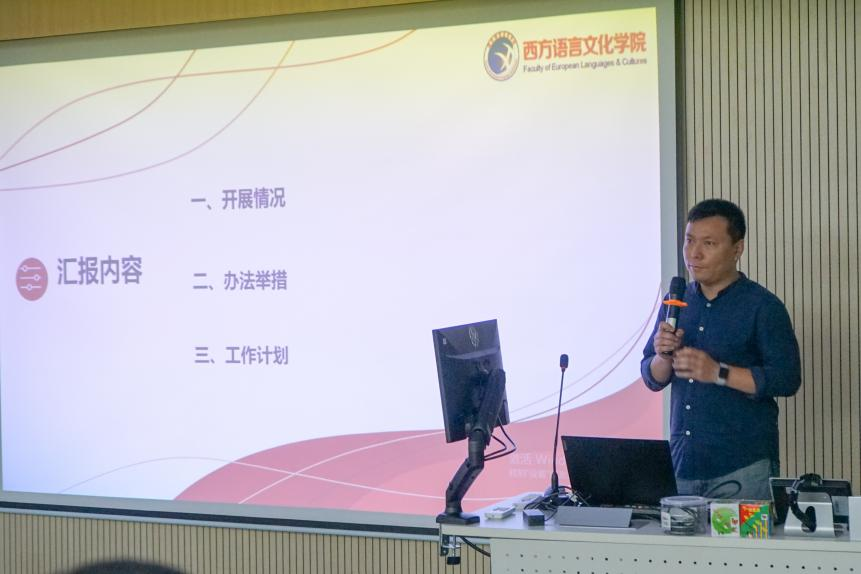 商英学院方思懿、西语学院王斌龙、新闻学院李媛分别就“百千万工程”突击队行动工作进行分享交流,向与会人员介绍学院的工作思路和经验。