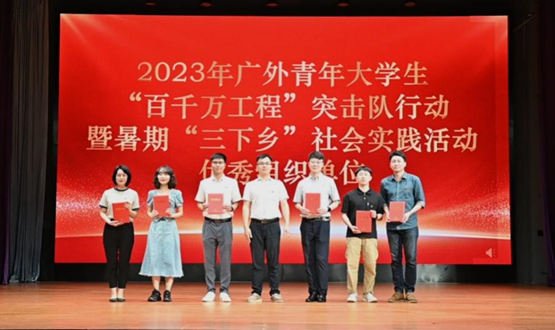 刘郎书记为经济贸易学院、国际商务英语学院、商学院、日语语言文化学院、东方语言文化学院和信息科学与技术学院颁发2023年广外青年大学生“百千万工程”突击队行动暨暑期“三下乡”社会实践活动优秀组织单位奖。