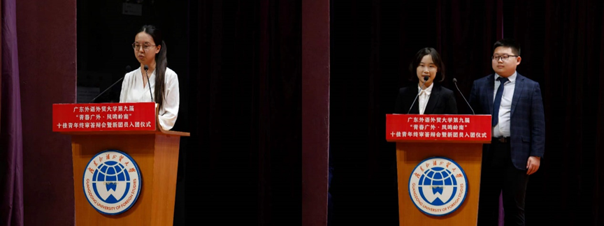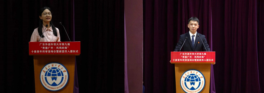 今年是新中国成立75周年,纪念五四运动105周年,为深入学习习近平新时代中国特色社会主义思想,贯彻党的二十大精神,进一步加强学生思想道德建设,凝炼和培育大学生的时代精神,发挥先进典型的示范引领作用,4月28日下午,值五四青年节来临之际,校团委于大学城校区B8学术报告厅举办了第九届“青春广外·凤鸣岭南”十佳青年终审答辩会暨新团员入团仪式。