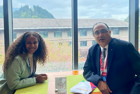 我校留学生茱莉(ETOMEA JULIE)与联合国教科文组织驻华代表处代表夏泽翰(Professor Shahbaz Khan)合影留念