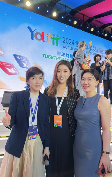 吴怡参加开幕式,与联合国开发计划署驻华代表处青年事务专家高鑫(右一)交流并合影留念