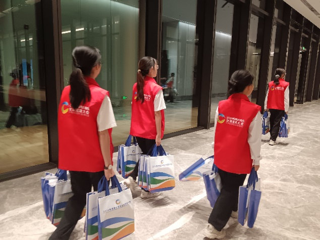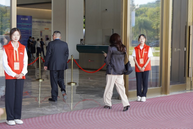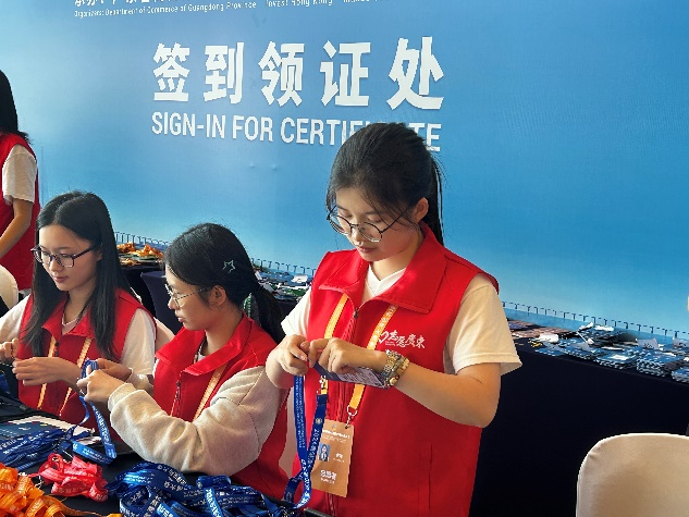 在本次活动中,有80名志愿者分别在11个岗位参与服务。在会务保障工作中,志愿者们细致地核对和整理会务材料,并将其整齐装袋;在论坛会议组,志愿者们面对港澳台嘉宾、海外宾客及媒体代表,充分发挥专业语言优势,提供翻译服务并耐心协助嘉宾签到;在场地指引组,志愿者们事先熟悉会场布局,为参会嘉宾指引路线,确保大会顺利进行;在办证服务组,志愿者们在短时间内掌握了派证系统,高效地承担起办理和派发证件的任务,为参会嘉宾提供了及时的服务保障。为期三天的志愿服务工作,让志愿者们得到了锻炼,在服务他人的同时,他们深入参与到了粤港澳全球招商大会,感受粤港澳大湾区经济的蓬勃发展。