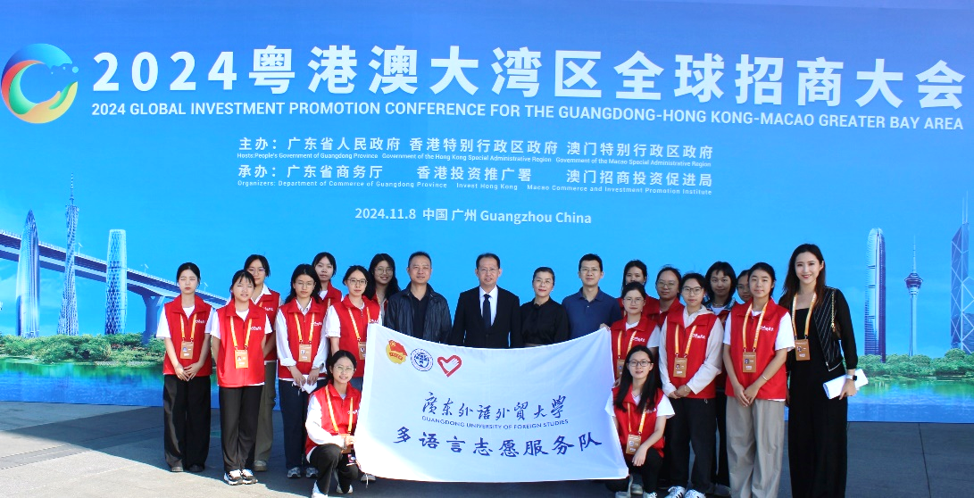 本网讯 2024年11月6日-8日,2024粤港澳大湾区全球招商大会在广州白云国际会议中心国际会堂举行。为保障大会的顺利进行,我校80名多语志愿者为从世界各地来穗参加会议的嘉宾提供语言翻译、嘉宾接待、会务指引、办证服务等工作,展现了广外青年志愿者的青春风采。他们以细致周到的服务和高度的责任心,为来自世界各地的参会嘉宾提供了无微不至的帮助,成为大会现场一道亮丽的风景线。