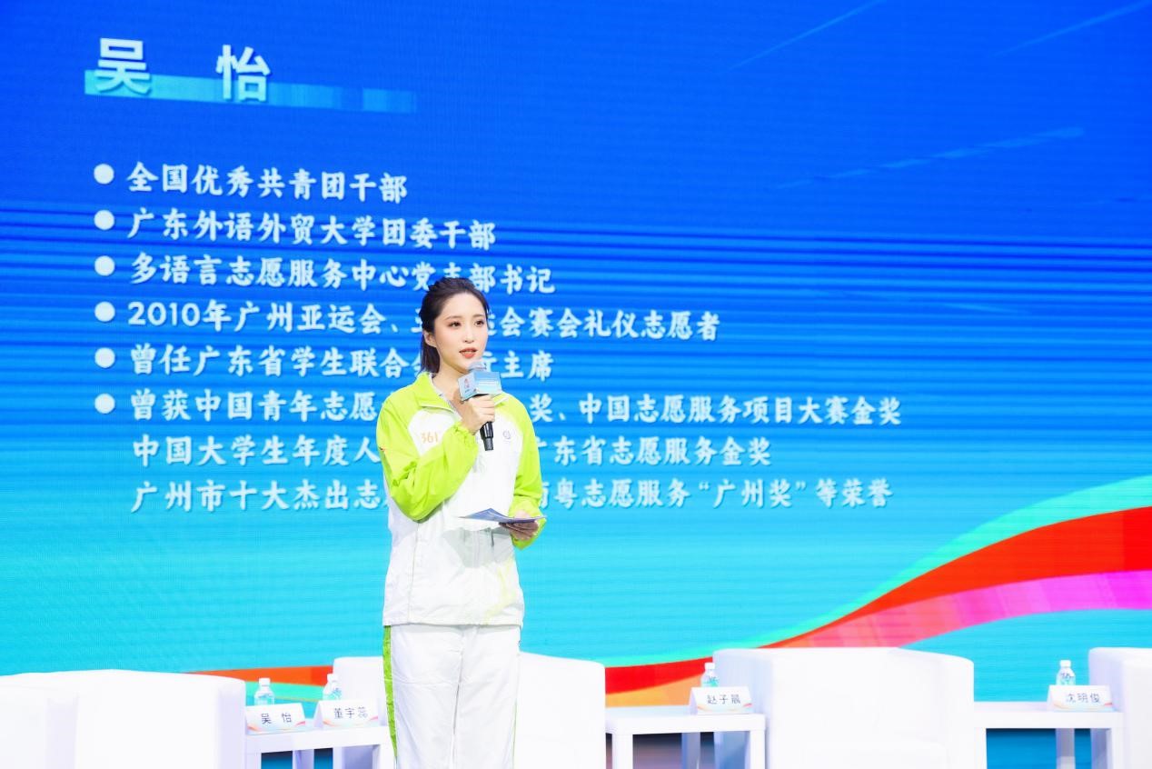 2022年北京冬奥会志愿者,来自北京科技大学的赵子晨、2021年陕西第十四届全国运动会志愿者,来自西安外国语大学的董宇蕊、2010年广州亚残运会志愿者,华南师范大学2013届校友沈明俊分享了自己作为赛会志愿者的经历,并寄语全运会志愿者,要传递神志愿精神,弘扬体育文化,展现粤港澳大湾区的青年风采。