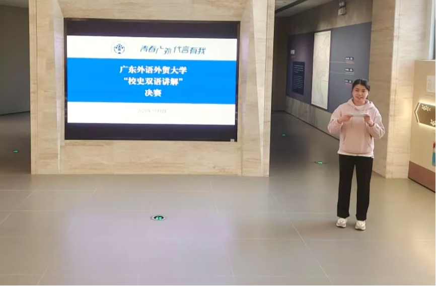 本网讯 1月9日下午,广外校史双语讲解大赛决赛在校史馆成功举办。经过初赛和复赛的选拔,最终有五位选手脱颖而出,站在了决赛的舞台上。选手们来自不同的专业和年级,但他们都对校史怀着深厚的热情,在比赛中展现出了独特的风采。