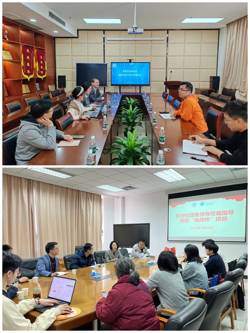 本网讯 为更好助力我校项目参加第十八届“挑战杯”广东大学生课外学术科技作品竞赛,本周校团委组织一系列项目打磨工作。3月18日-19日,校团委书记刘郎、副书记赵继伟带队走访信息学院、公管学院、数统学院等,就挑战杯省赛项目打磨情况进行了沟通交流,推动各学院深入项目优化,改善项目文本结构,引入专家资源支持项目打磨。在与各个学院的打磨座谈会上,学生团队展示风采,专家和老师们各抒己见,为项目的优化提升献言献策。各个学生团队也摩拳擦掌,力争在接下来的第十八届“挑战杯”广东大学生课外学术科技作品竞赛中取得佳绩。