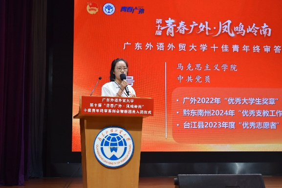 本网讯 为彰显青春榜样力量,展现我校青年学子的精神风貌,发挥优秀青年的示范引领作用,值此我校喜迎六十华诞之际,赓续广外薪火相传的优良传统,4月25日下午,校团委举办第十届“青春广外・凤鸣岭南”十佳青年终审答辩会暨新团员入团仪式。