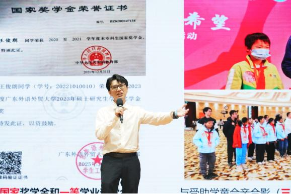 东南亚学院唐艺、谢雯枝、商英学院王健淇同学以小语种为桥梁,将个人成长熔铸于国家外交事业,用小语种讲好中国故事,展现中国青年风采。马克思主义学院甘秋丹同学读研期间休学参加西部计划,跨越三省服务千余乡村学子,服务基层乡村振兴。新闻学院帕提玛·卡汗从国家资助内初班到广外,用行动回馈社会,在志愿服务中展现少数民族青年风采。中文学院谭秀薇、商英学院胡秋琳扎根团学一线,在宣讲与实践中凝聚先锋力量,奏响青春主旋律。信息学院密码学与软件安全创新团队响应国家战略,勇做科研攀登者、安全守护者与责任传播者。