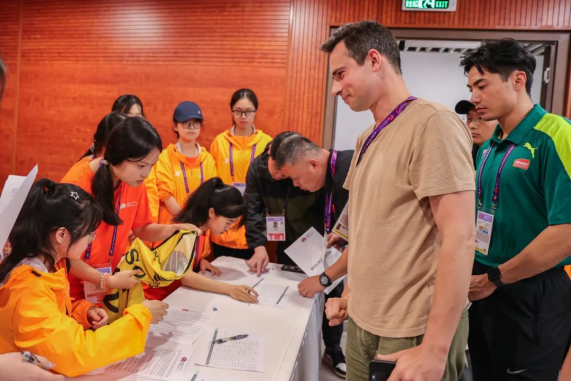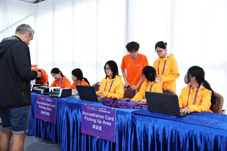 服务过程中,多语志愿者们用实际行动诠释了“奉献、友爱、互助、进步”的志愿精神,践行了“爱溢全球、志在广外、愿报家国”的广外志愿精神,凭借专业的多语言技能,形成了一条高效运转的服务链。接待组的“城市使者”们以贴心翻译与真诚笑容,编织起全方位接待网络,为参赛人员打造宾至如归的赛事初体验;制证中心的“信息卫士”们凭借规范化流程与智能核验系统,实现证件信息零误差录入,构筑起赛事身份认证的坚固防线;媒体中心的“光影匠人”们穿梭于赛场角落,凭借敏锐的新闻嗅觉,将赛场上的拼搏瞬间转化为震撼人心的视觉盛宴。还有无数“幕后英雄”默默耕耘,从物资签领到会场布置,以严谨细致的态度全力做好岗位工作。