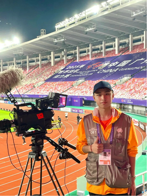 “作为国际政治专业的学子,我认为,参与本次2025年世界田联接力赛这类的青年外事志愿服务活动,就是从青年这一微观切口参与人类命运共同体构建的生动实践。”来自区域国别学院(国际关系研究院)的2022级本科生曹庭春是校青马班学员,在本次赛事中担任天河体育场制证中心志愿者小组长,负责统筹协调制证服务保障。通过有效统筹和协调,天河体育场制证中心实现证件信息零误差录入、快速印制和精准发放,为所有参赛人员筑起第一道安全防线。同时,他充分发挥自身新媒体优势,负责志愿者服务素材的拍摄,创作志愿者创意短视频,用镜头和影像记录广外多语言志愿者的亮丽风采。他坚信,中国青年志愿者的开放包容、热情细致,能够让世界看到一个更加真实、立体、全面,可信、可爱、可敬的中国。