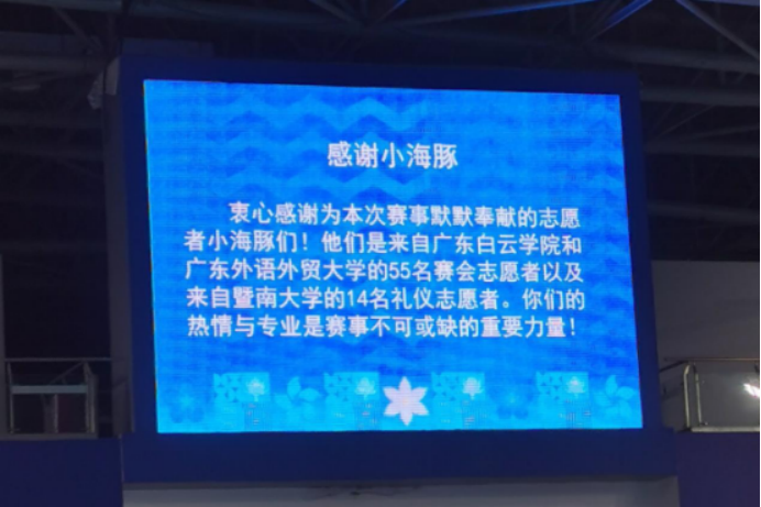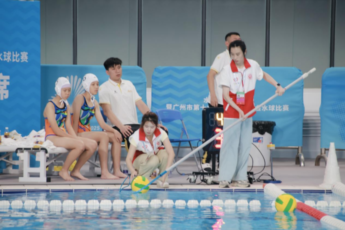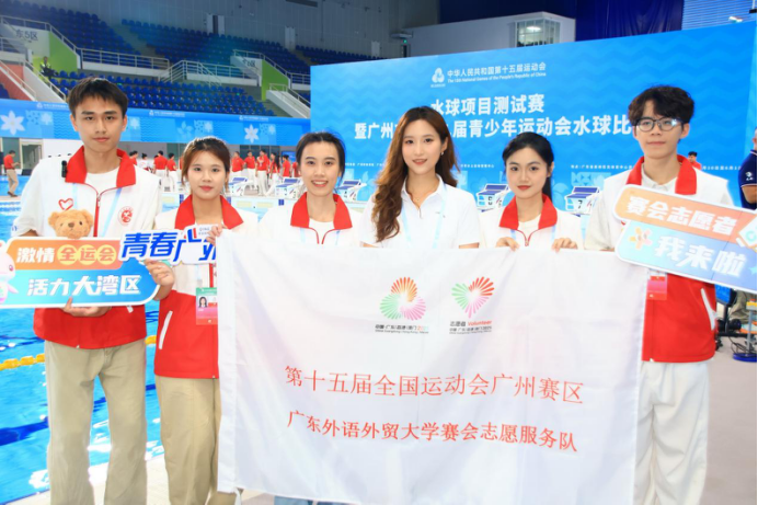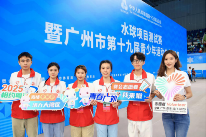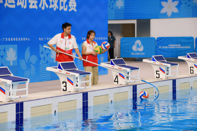本网讯 5月30日至6月1日,第十五届全国运动会水球项目测试赛暨广州市第十九届青少年运动会水球比赛在广东奥体中心游泳跳水馆举行。赛事期间,我校十五运会和残特奥会广州赛区的志愿者正式上岗服务,也是我校首批上岗的全运“小海豚”。
