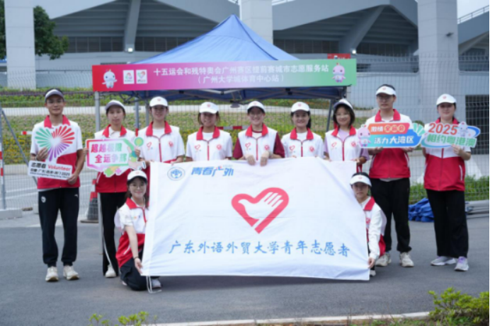 于此同时,在广州大学城体育中心设立的十五运会和残特奥会广州赛区提前赛城市志愿服务站内,75名广外“小海豚”上岗,全力保障十五运会女子u16足球赛站点运转。志愿者们全天候值守岗位,在关键接驳点提供方向指引,引导观众安全有序地进出场馆区域;精准掌握场馆周边公共交通线路和停车场动态,提供出行路线优化建议;深入了解赛程安排,耐心解答各类赛事咨询;同时配备基础急救物品并掌握应急流程,高效协助处理观众身体不适或物品丢失等突发状况。他们以规范服务和真诚沟通,有力保障各服务站平稳运转,将广州的热情温度传递给每一位来宾。