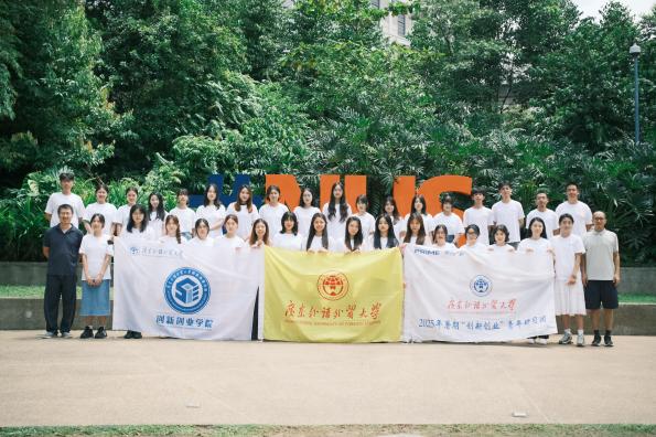 本网讯 2025 年8月3日至8月9日,广东外语外贸大学创新创业学院和校团委35名学子赴新加坡国立大学(NUS)参与“全球创新创业先锋营”海外研修项目。在为期一周的充实行程中,研学团深度体验了国际前沿的教学模式,在创新课堂中激发思维,积极参与跨文化交流活动,亲历多元文化环境,有效提升了语言沟通能力,显著拓宽了全球视野。