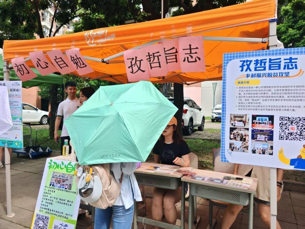 本网讯 为搭建师生合作平台,促进科创项目培育,校团委青年发展部于9月27日在南校生活区校道摊位举办“师生桥·逐梦”招新会。活动邀请星火虹推工作室、初心自勉、一路童行、孜哲旨志、浪花智慧助老共五支优秀团队参与,面向全校学生开展项目招募与经验分享。