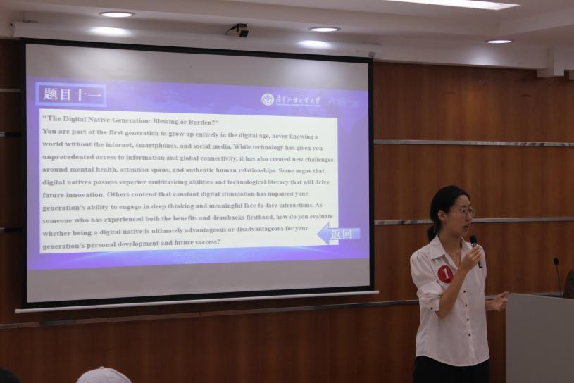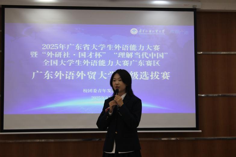 本网讯 金秋送爽,思想激荡。9月29日晚,2025年广东省大学生外语能力大赛暨“外研社·国才杯”“理解当代中国”全国大学生外语能力大赛广东赛区综合能力赛道(演讲赛道)广东外语外贸大学校级选拔赛在学校MBA楼103丝纺讲堂启幕。来自全校各学院的数十名青年学子齐聚一堂,以英语为桥,以思想为刃,围绕时代热点议题展开深度表达,用青春之声传递广外学子的家国情怀与国际视野,为现场师生呈现了一场兼具语言魅力与思想深度的视听盛宴。