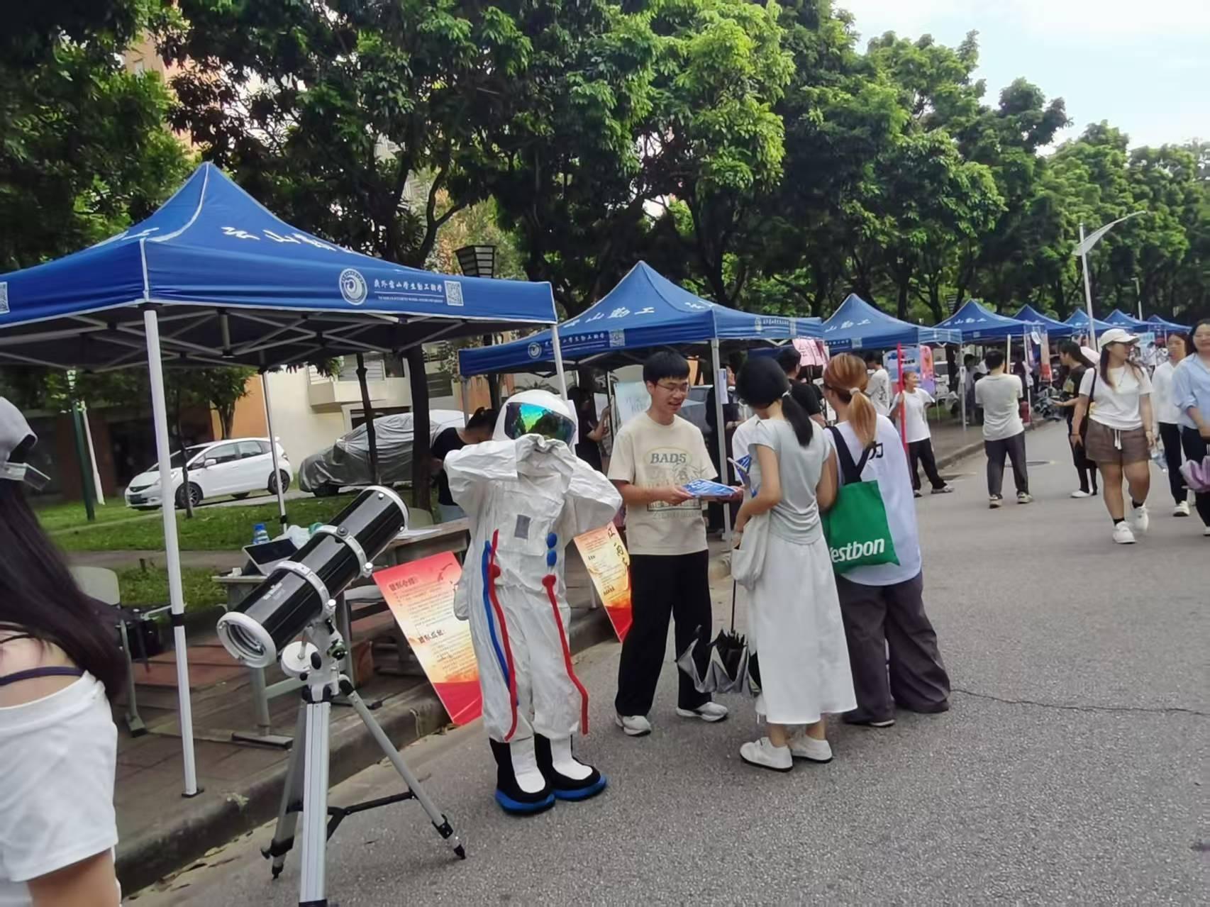 本网讯 2025年9月27日14:00—18:15,由校团委主办、学生社团工作部承办的“甲子同心圆·社团万花筒”社团嘉年华在白云山校区12栋前空地、大学城校区生活区校道同步举行。百余家社团集体出摊,新生循声而来,校道秒变青春集市,笑声、掌声、音乐声此起彼伏,为建校60周年献上最热烈的注脚。
