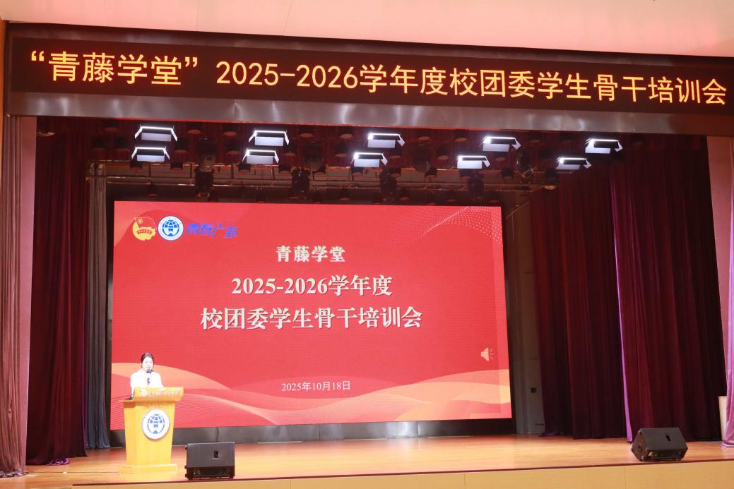 本网讯 2025年10月18日上午,广东外语外贸大学“青藤学堂”2025-2026学年度校团委学生骨干培训会在大学城校区B8报告厅举行。校团委全体团干部及学生骨干参加本次培训。