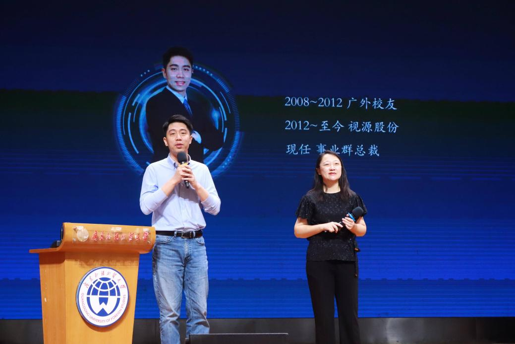 在校友讲堂环节,特邀2004级校友、视源股份首席风控官吕丹凤师姐,2008级校友、视源股份业务事业群总裁邱澈师兄返校分享。两位校友以“让世界看见年轻的力量”为主题,回顾了从学生干部到企业高管的成长历程。他们强调,学生干部经历培养了沟通、表达、组织与协调等核心能力,并通过互动环节启发观众思考:“为什么想成为学生干部?”答案聚焦于服务他人与自我突破。