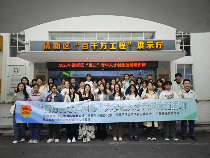 本网讯 2025年10月23日,清新区“双百行动”校地结对共建高校广东外语外贸大学组织学生骨干前往清远市清新区,开展“百万英才汇南粤”大学生人才走进清新活动。同学们通过参观产业园区、走访代表性企业、体验当地文化,全方位感知清新区的经济社会发展脉络。