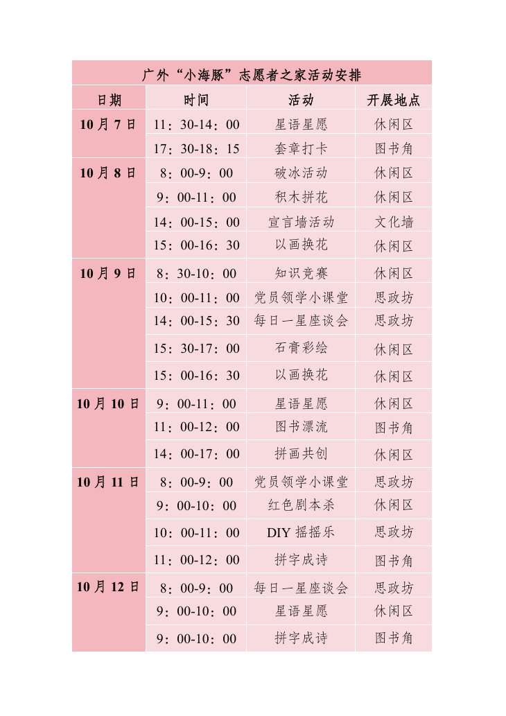 志愿者之家活动一览表