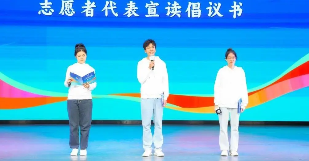 2024年11月9日晚,我校选派32名志愿者代表参与“相约湾区 共迎全运”十五运会和残特奥会倒计时一周年启动仪式,宣读倡议书。