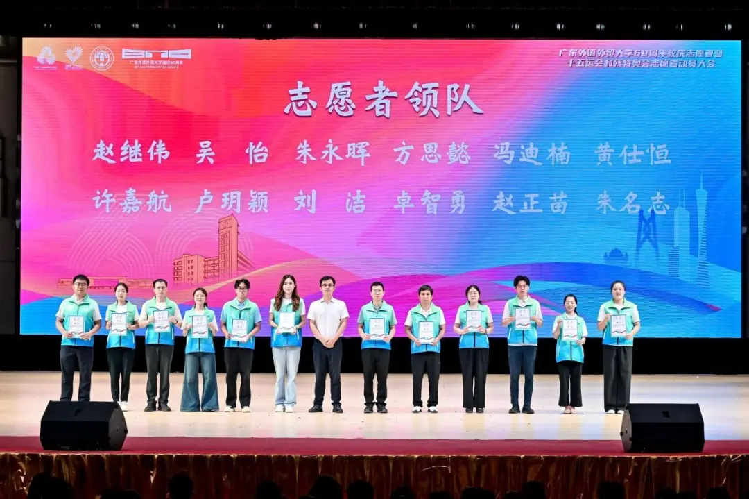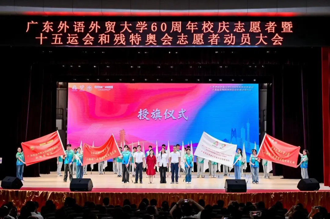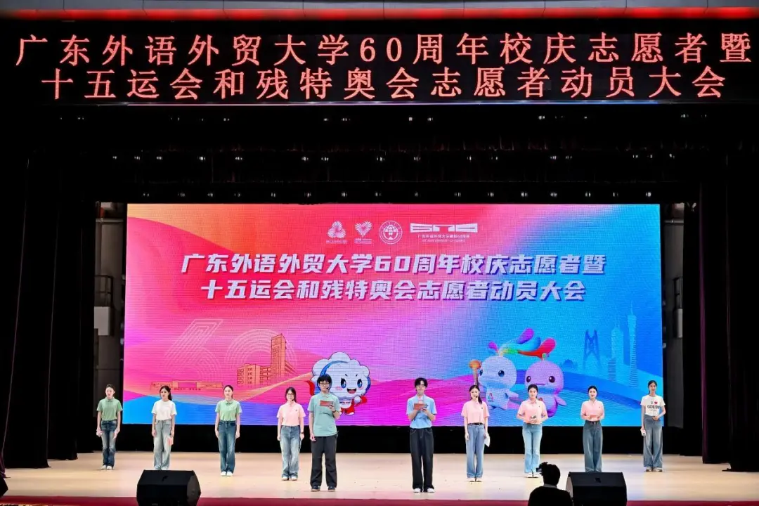 2025年9月27日,广东外语外贸大学60周年校庆志愿者暨十五运会和残特奥会志愿者动员大会在我校白云山校区云山会堂举行。