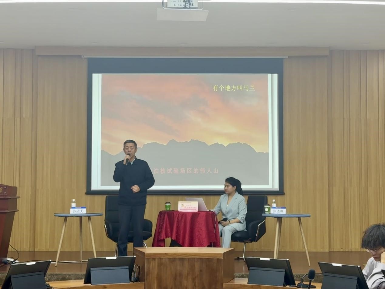 活动现场,共和国首任核试验基地司令员张蕴钰少将之子张旅天大校作为特邀嘉宾,与师生们展开了一场意义非凡的面对面访谈交流。张旅天大校出生于1956年,自1972年入伍后,便在装甲兵基层开启了漫长的军旅生涯,多年深耕基层,积累了丰富的实战经验,曾任团参谋长。此后,他调入北京卫戍区机关,常年投身于训练和装备保障工作。他参与过核试验、朱日和演习、首都防空演习、国家反恐怖演习、国庆阅兵等众多重大活动,2011年退休。在访谈中,张旅天大校以质朴且真挚的语言,缓缓拉开了父亲张蕴钰将军传奇一生的历史帷幕。