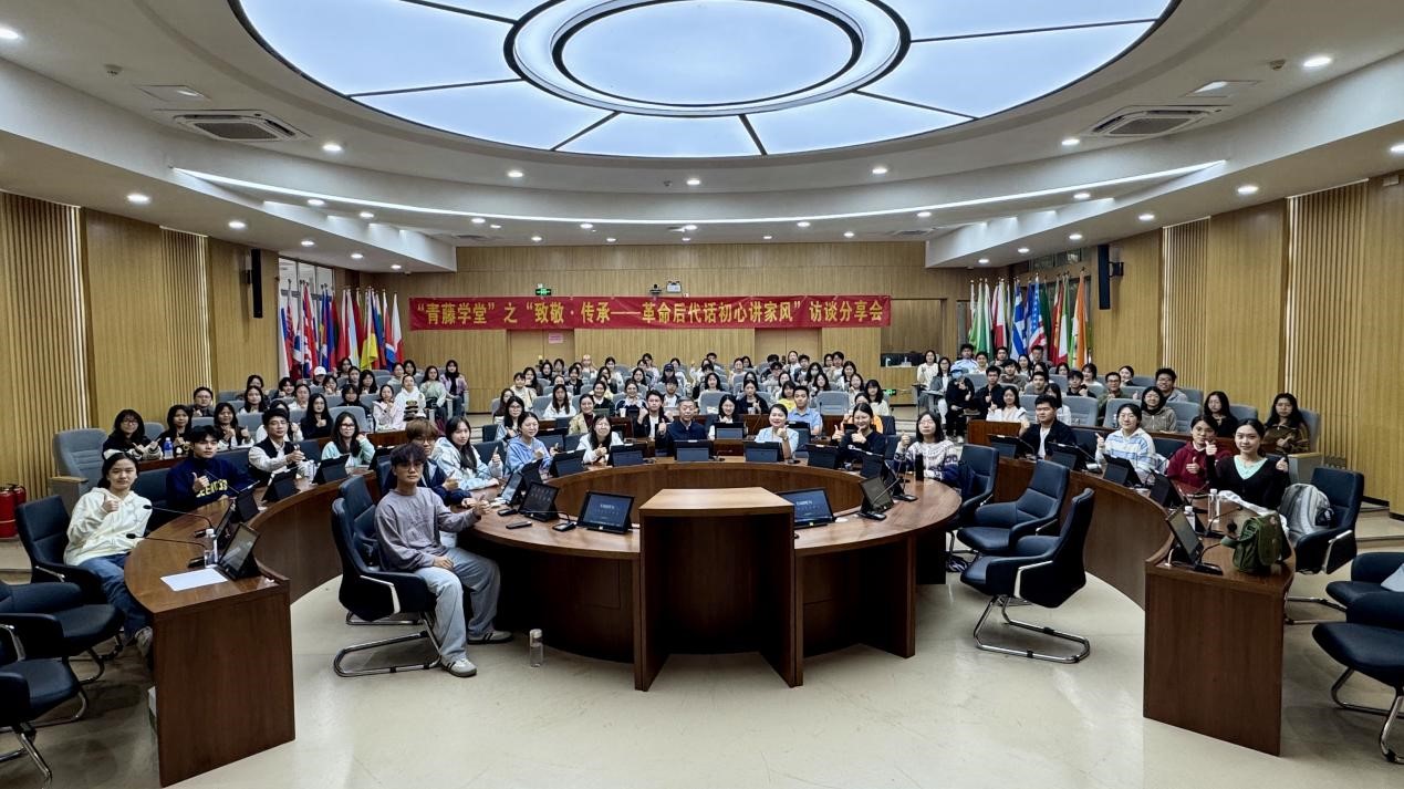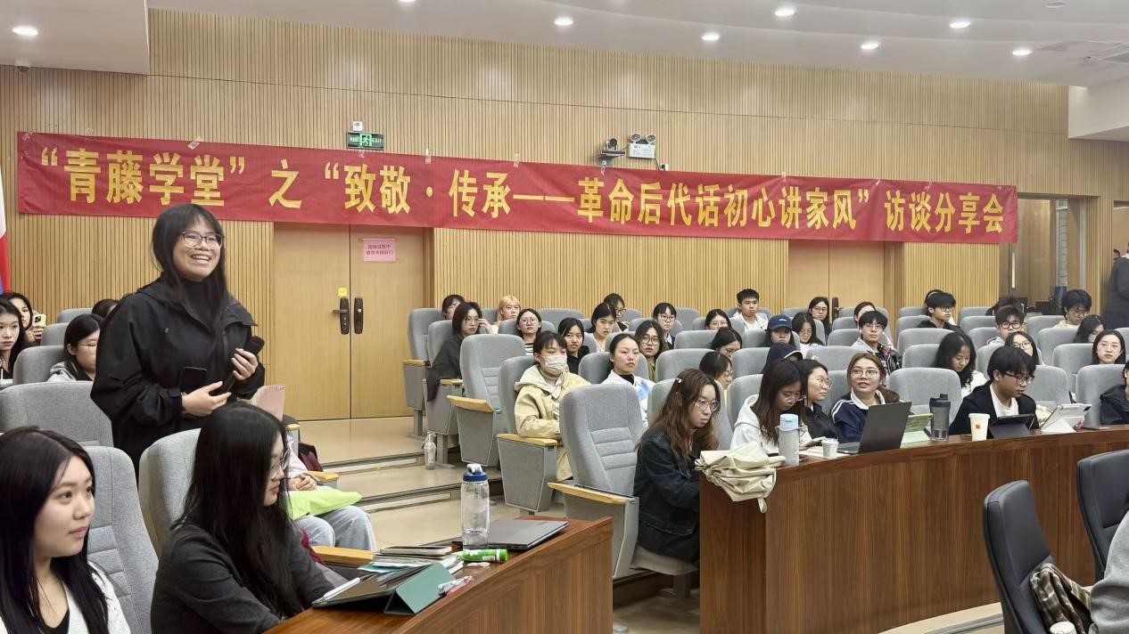 本网讯 为贯彻落实《教育部办公厅等七部门关于开展全国高校“立报国强国大志向做挺膺担当奋斗者”宣传教育的通知》,激励广大师生坚定理想信念,勇担时代使命。2025年11月27日下午,由团中央井冈山中心主办、共青团广东外语外贸大学委员会承办的“致敬·传承——革命后代话初心讲家风”访谈分享会在大学城校区圆满举行。特邀嘉宾张旅天大校、团中央井冈山中心张洁琳老师出席本次访谈分享会,云山先锋班全体学员、校青马班学员、校团委学生骨干等参与学习,访谈分享会由校团委挂职副书记薛达老师主持。